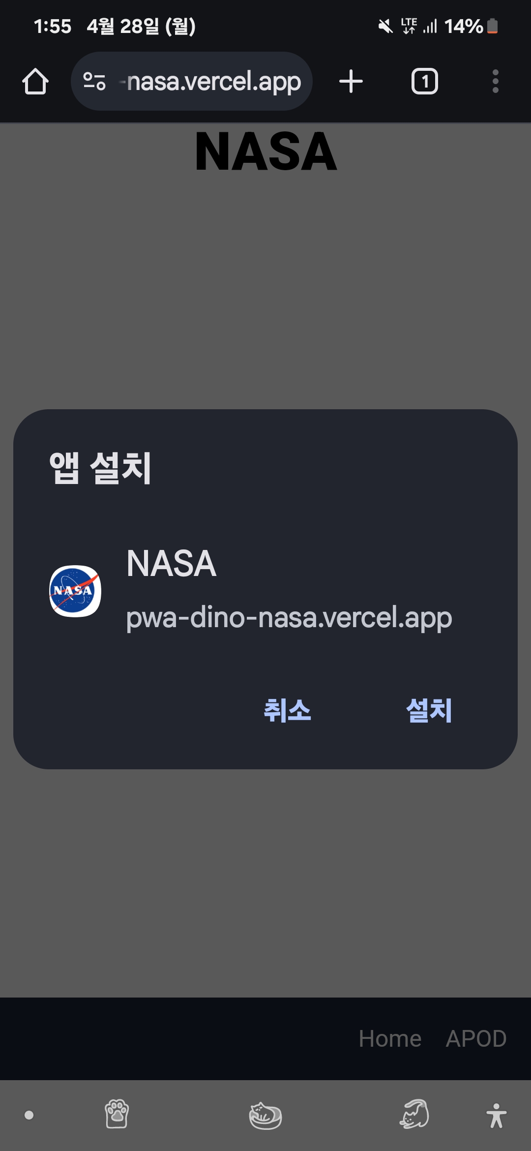 PWA가 잘 적용되었는지 확인해 주기 위해 Vercel로 배포하여 확인하여 보니 잘 작동하는 것을 확인할 수 있었다. 앱이 궁금하다면 이 주소로 접속하면 된다. (시간이 지나면 닫혀있을 수도 있다.)